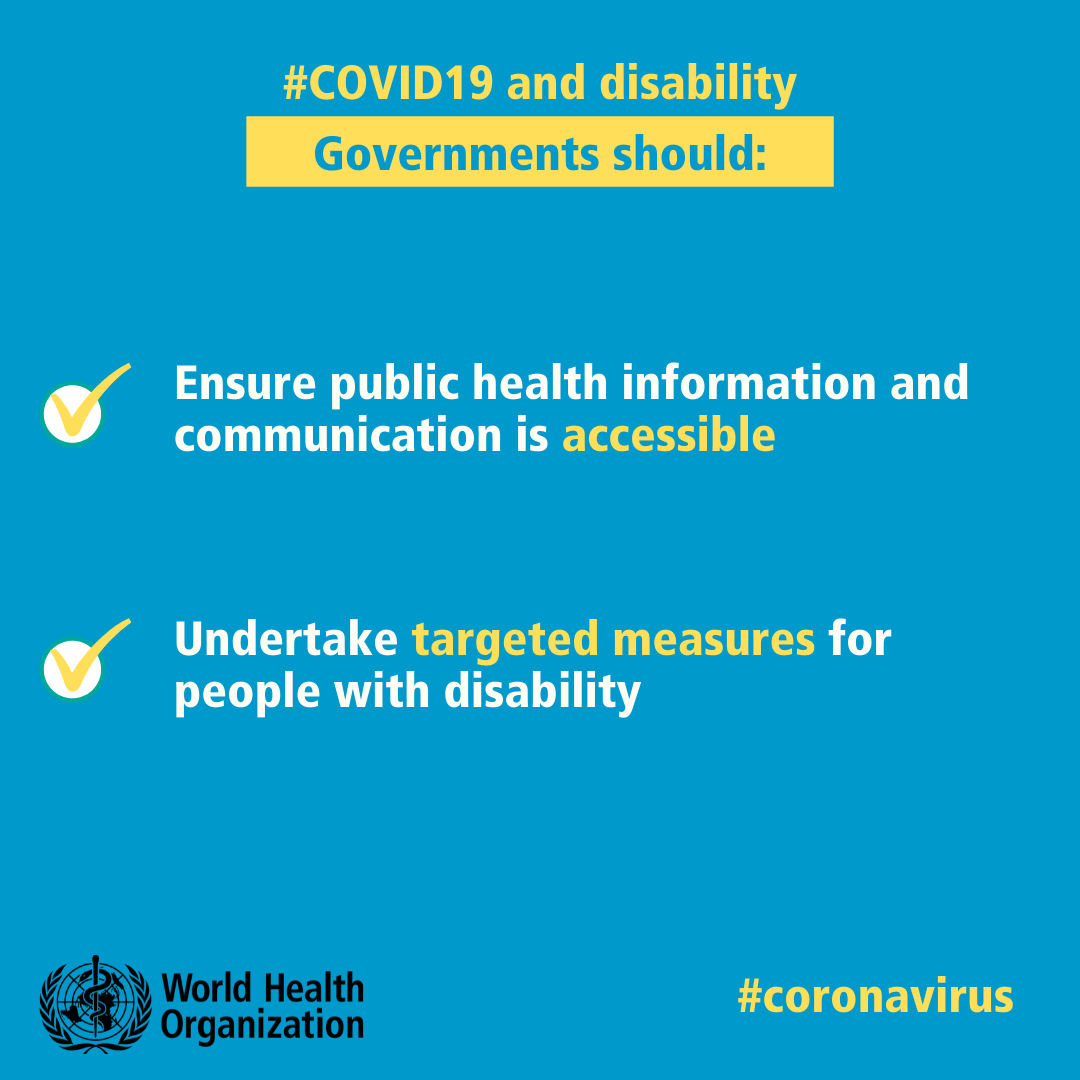 Join the campaign and help WHO raise awareness on the need to respond to the needs of people with disability in all aspects of society, including during the COVID-19 pandemic.