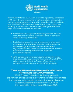 The Ministry of Health in collaboration with WHO Sri Lanka and other stakeholders continues to closely monitor the situation and to strengthen preparedness and response efforts. Sri Lanka has made great progress in controlling the spread of COVID-19; however, the threat is not over yet. We must build on the progress made to keep ourselves, our loved ones, and our communities safe, healthy, and thriving.